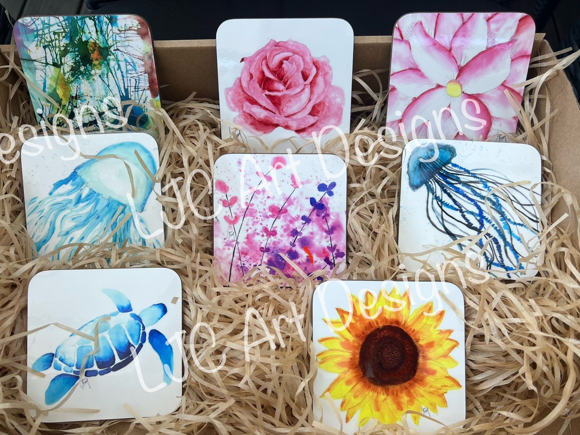 Printed on premium gloss hard board with non slip cork backing. 89x89mm.